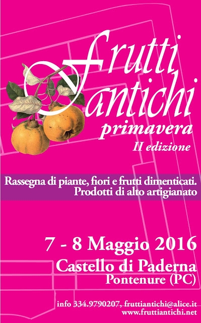 La manifestazione, che ha come filo conduttore la salvaguardia della biodiversità e il rinnovamento del patrimonio vegetale con particolare attenzione alle tipicità del territorio, quest’anno - dopo il successo della prima edizione primaverile del 2015 con 10.000 visitatori presenti - viene riproposta con nuovi spunti e suggestioni. Tra vividi colori e intensi profumi, il parco del castello si trasformerà in un’immensa aiuola nella quale le fioriture tardive di azalee e rododendri saranno accanto alle prime rose e ortensie, alle piante aromatiche e ornamentali, ai prodotti dell’orto e a tante altre meraviglie botaniche che caratterizzano la bella stagione. Grazie alla presenza di 130 espositori accuratamente selezionati provenienti da tutta Italia, il pubblico avrà non solo la possibilità di ammirare e acquistare un grande assortimento di specie floreali e arboree e piantine da orto, ma anche di ricevere utili consigli di coltivazione e idee per l'allestimento dei propri angoli verdi. Inoltre, i produttori agricoli ospitati negli spazi della corte presenteranno le loro migliori primizie: ravanelli, carote, asparagi, fragole. E ancora succhi di frutta, confetture, gelatine, sottoli e sottaceti, etc. In particolare sarà presente l’Associazione Donne & Riso di Vercelli, esempio di sodalizio al femminile che, oltre a divulgare le informazioni sulle nuove e complesse realtà della moderna agricoltura, ha lo scopo di dibattere i problemi della famiglia e della donna inserita nel contesto agricolo. Come sempre non mancheranno arredi da giardino, oggetti d’antiquariato e modernariato e, novità di questa edizione, ci sarà una speciale sezione dedicata ai tessuti. Ospite speciale sarà la Scuola Asolana di Antico Ricamo, eccellenza dell’artigianato veneto e italiano, creata da Robert Wiedman Barret Browning alla fine dell’Ottocento per dare lavoro alle giovani donne del paese. La scuola continua ancora oggi la sua produzione di ricami, eseguiti a mano, con l’intento di far conoscere e tramandare un’antica e nobile arte di eleganza, qualità, raffinatezza e perfezione. Nei due giorni di manifestazione, come di consueto, momenti di svago e di apprendimento si alterneranno a dimostrazioni e conferenze, mentre i visitatori più giovani avranno la possibilità di partecipare a laboratori e giochi. Tutto nell’atmosfera di serenità e di cordiale ospitalità ispirata dal Castello di Paderna, castrum romano documentato dal IX secolo, ambiente ideale per una tra le mostre e mercato florovivaistiche più apprezzate del nostro Paese. E ancora, in occasione di “Frutti Antichi” verrà organizzata, negli spazi della ex stalla del castello, una mostra in omaggio a Beatrix Potter nel 150° della nascita della grande scrittrice, illustratrice e naturalista inglese, che vedrà esposta una collezione di 350 piccoli dipinti a olio e china inglesi, eseguiti su seta e arricchiti da preziosi ricami, di epoca vittoriana. Ingresso a contributo minimo di 7 €; 5 € per gli iscritti FAI e per i possessori della Card dei Castelli del Ducato. Ingresso gratuito per i bambini fino ai 12 anni e per chi si iscriverà al FAI in occasione della manifestazione. I contributi raccolti saranno destinati a Torre e Casa Campatelli, bene del FAI a San Gimignano (SI). www.fruttiantichi.net