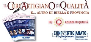 Il CERCARTIGIANO DI QUALITÀ è il Portale differente che cercavi, dove la qualità e l’eccellenza al giusto prezzo sono, per le Aziende presenti, indicatori di distinzione e di merito fondamentali per la tua tranquillità. IL CERCARTIGIANO DI QUALITÀ è stato creato per te e per le tue esigenze da CONFARTIGIANATO BIELLA, un'Organizzazione che rappresenta le piccole Aziende Artigiane, e che collabora con i Consumatori ininterrottamente da ben 67 anni (fu costituita il 14 Dicembre 1945). IL CERCARTIGIANO DI QUALITÀ è il portale che contiene: dati storici, tecnici e professionali delle più qualificate Aziende Artigiane del territorio biellese. Una guida pratica, di facile consultazione, di immediato utilizzo, credibile nei contenuti ed attendibile per la completezza dei dati pubblicati. IL CERCARTIGIANO DI QUALITÀ è il portale che fa la differenza, non te lo vogliamo dire noi ma, a rivelartelo sarà il piacere di una tua scoperta, quando concretamente capirai che attraverso proposte chiare, in un percorso di ricerca esente da rischi, avrai finalmente trovato: aziende e professionisti di comprovata serietà, affidabilità e competenza veramente in grado di garantirti servizi di qualità al giusto prezzo, sicuramente il prezzo migliore in rapporto alla qualità dei servizi offerti.
