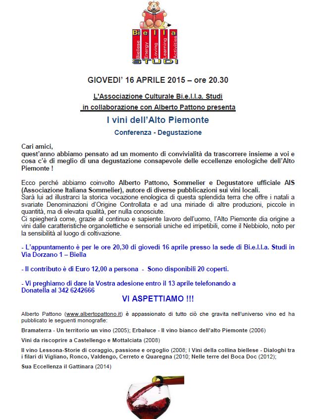 E' necessario prenotarsi entro il 13 aprile via email a info@biellastudi.it oppure telefonando a Donatella che raccoglie le prenotazioni al numero 342 6242666