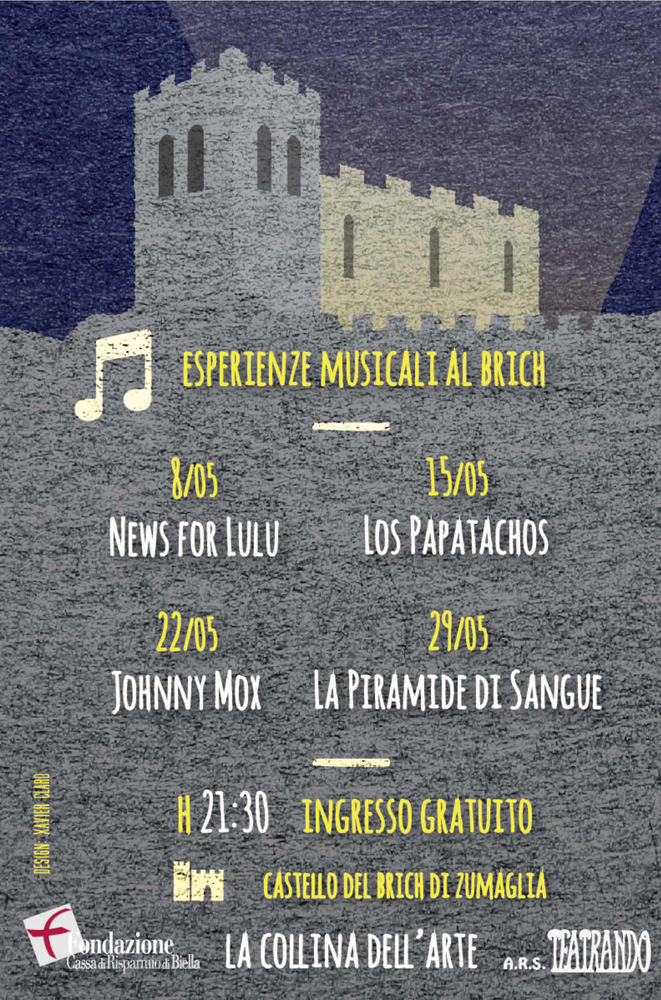 Questa settimana, in occasione della giornata di festa, le consuete passeggiate della domenica in groppa al pony Sampey verranno anticipate a Sabato 25. Si parte dalla Casa di Guardia dalle 16.00 alle 18.00 ogni mezz’ora, ma occorre prenotare al numero 335.6509878. Per raggiungere la Casa di Guardia si consiglia di accedere al parco dalla parte di Zumaglia. Dopo aver lasciato l’auto nel parcheggio, s’imbocca a piedi la strada acciottolata del cancello principale (la stessa che conduce anche direttamente al Castello). Al primo incrocio, dopo pochi metri, si gira a destra proseguendo fino a raggiungere l’edificio. Costo della passeggiata: 10 euro. Durata della passeggiata: 30 minuti. NOTE LUNATICHE Nel mese di maggio ritorna, dopo il debutto dello scorso anno, la rassegna musicale ospitata al venerdì sera sulla panoramica terrazza del Castello. “Note lunatiche: scortami gentilmente a un concerto sotto le stelle” prevede quattro serate e coinvolgerà ospiti provenienti da fuori provincia: artisti di qualità con progetti originali, selezionati dalla Mattia Rodighiero ed Elena Pilotto. Insolite suggestioni caratterizzeranno i vari appuntamenti, il cui fascino è dato dal perfetto incontro tra la bellezza luogo, rappresentato dalla terrazza del Castello che offre una vista straordinaria sull’intero territorio, e la qualità delle proposte artistiche per nulla scontate, a volte imprevedibili, sempre coinvolgenti. Il programma di quest’anno propone: i News For Lulu l’8, Los Papatachos il 15, Johnny Mox il 22 e La Piramide di Sangue il 29. Ogni serata inizia alle 21.30, è a ingresso libero e prevede un servizio bar. Seguiranno dettagli. Intanto date un'occhiata alla pagina su Facebook: https://www.facebook.com/notelunatiche. CASCINA ALÉ Si stanno definendo inoltre gli ultimi dettagli per l’inaugurazione di Cascina Alé. Marco e Francesca, che già vi abitano da più di un anno, sono ora pronti a offrire, su prenotazione, un servizio di ristoro a base di prodotti tipici del territorio. L’inaugurazione ufficiale è prevista Sabato 9 maggio nel corso di una giornata che proporrà vari intrattenimenti. Anche in questo caso, seguiranno dettagli.