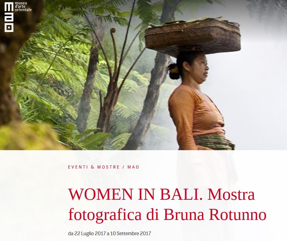 Nel progetto WOMEN IN BALI, Bruna Rotunno vuole mostrare questo fluire del lato femminile della vita a Bali. Il suo lavoro, durato 8 anni, nasce da una grande attrazione per l’isola, visitata per la prima volta 20 anni fa. La fotografa ha costruito un racconto per immagini, dove ogni gesto e ogni personaggio traduce l’essenza di un luogo unico, caratterizzato da una costante armonia. Partendo dalla mitologia balinese, fondata sul culto dell’acqua – la Holy Water, la Grande Madre, simbolo di creazione e purificazione – nelle sue fotografie viene mostrato il lato femminile dell’isola. Il sacro, il rito, la creatività, l’arte, la musica e la danza, sono qui raccontati attraverso i gesti quotidiani delle donne balinesi.