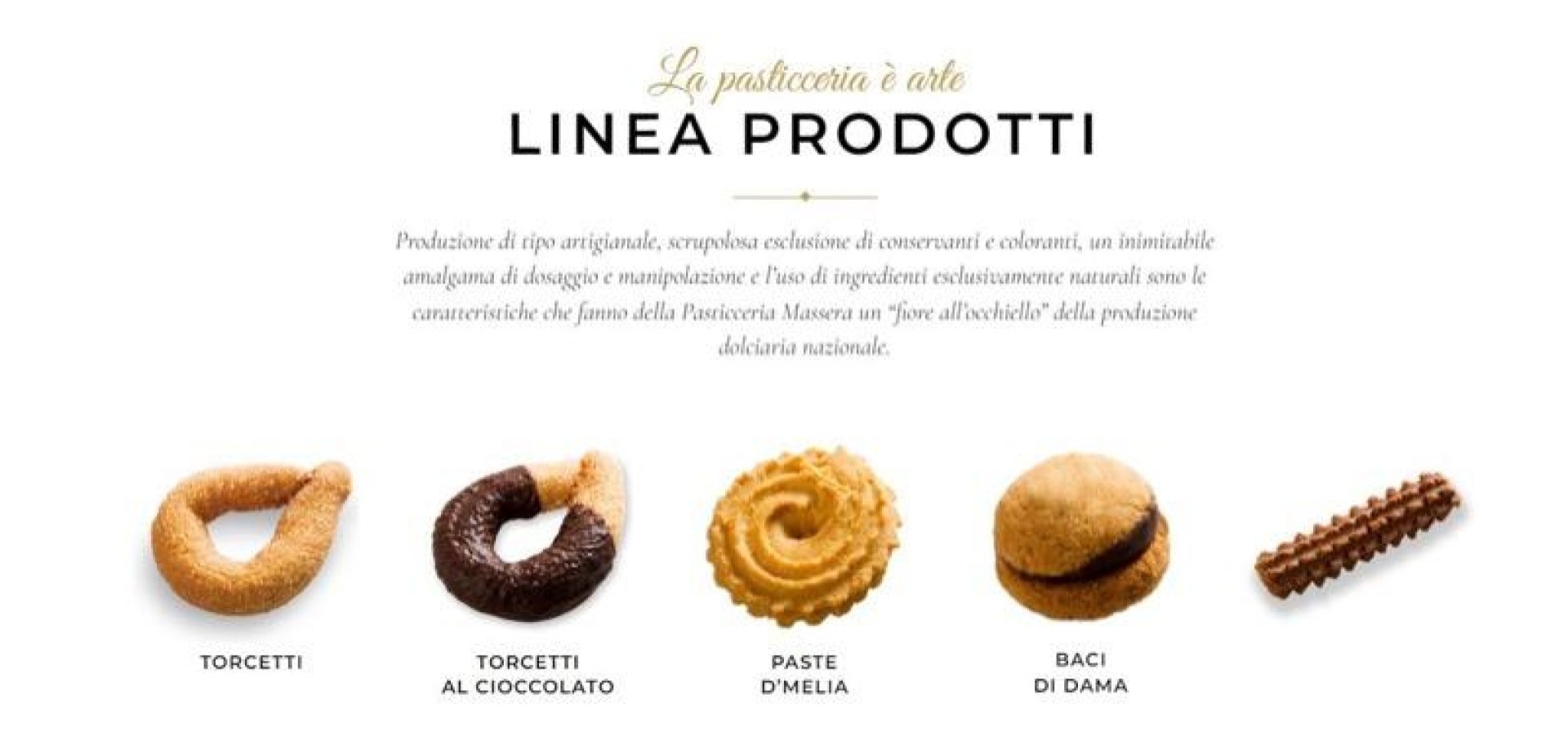 Tradizione e Qualità dal 1920 La pasticceria Massera è conosciuta ed apprezzata per la genuinità e l'originalità dei suoi prodotti: dai famosi torcetti al burro alle paste d' melia, dagli spumini alla nocciola a varie altre specialità. Il segreto di questa azienda è molto semplice: nata a Bornasco di Sala, un paesino sito nella verde collina della Serra Biellese, in provincia di Biella, la pasticceria Massera non ha fatto che assumere antiche ricette del luogo traducendo in produzione artigianale ciò che nei secoli scorsi veniva prodotto nell'ambito delle famiglie. Non vi è altro segreto. Gli ingredienti sono quelli fondamentali: farina, burro, zucchero, sale, uova, ecc... con scrupolosa esclusione di conservanti e coloranti. Inimitabili sono invece il dosaggio e soprattutto la manipolazione. Proprio perchè nel laboratorio Massera viene riprodotto l'antico modo di attuare alcune famose ricette della Serra, la lavorazione è eseguita per la maggior parte a mano da personale del luogo che si è tramandato particolari modi di lavorazione. Quanto di piú moderno la tecnologia ha messo a disposizione dell'arte del pasticcere è stato invece profuso nel forno. Non meno specializzata l'organizzazione che presiede alla confezione e soprattutto alle spedizioni ed alle consegne. Si deve a questi ultimi fattori se i prodotti Massera sono in grado di giungere a destinazione in tempi rapidissimi ed in varie regioni d'Italia. Svariati riconoscimenti ufficiali, premi, citazioni giornalistiche e letterarie fanno dei Torcetti di Bornasco e degli altri prodotti di questo angolo della Serra alcuni dei piú celebri prodotti della pasticceria italiana.