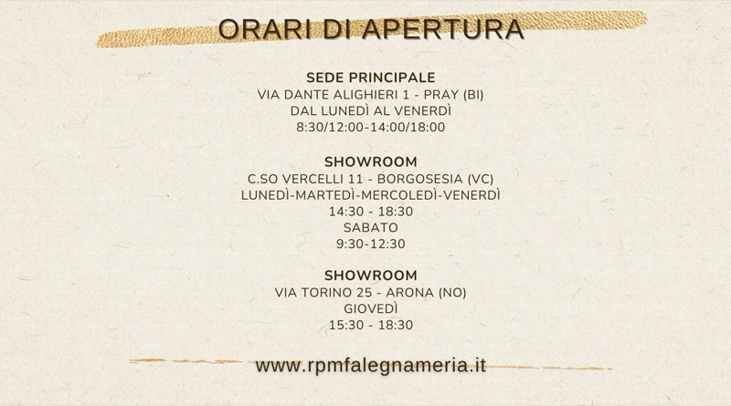SHOWROOM: Corso Vercelli 11 Borgosesia (VC) lunedì - martedì - mercoledì - venerdì 14.30 18.30 sabato 09.30 12.30